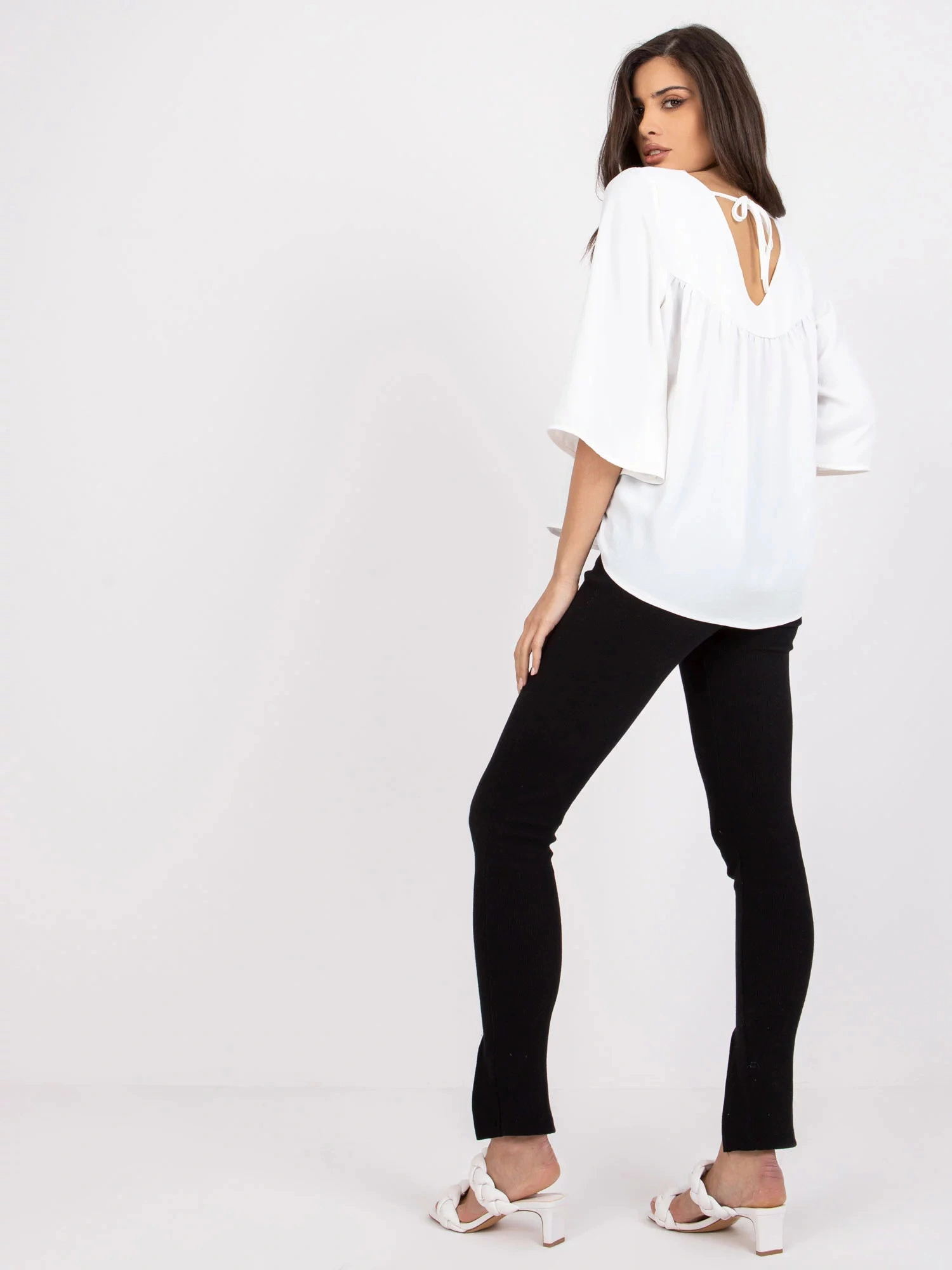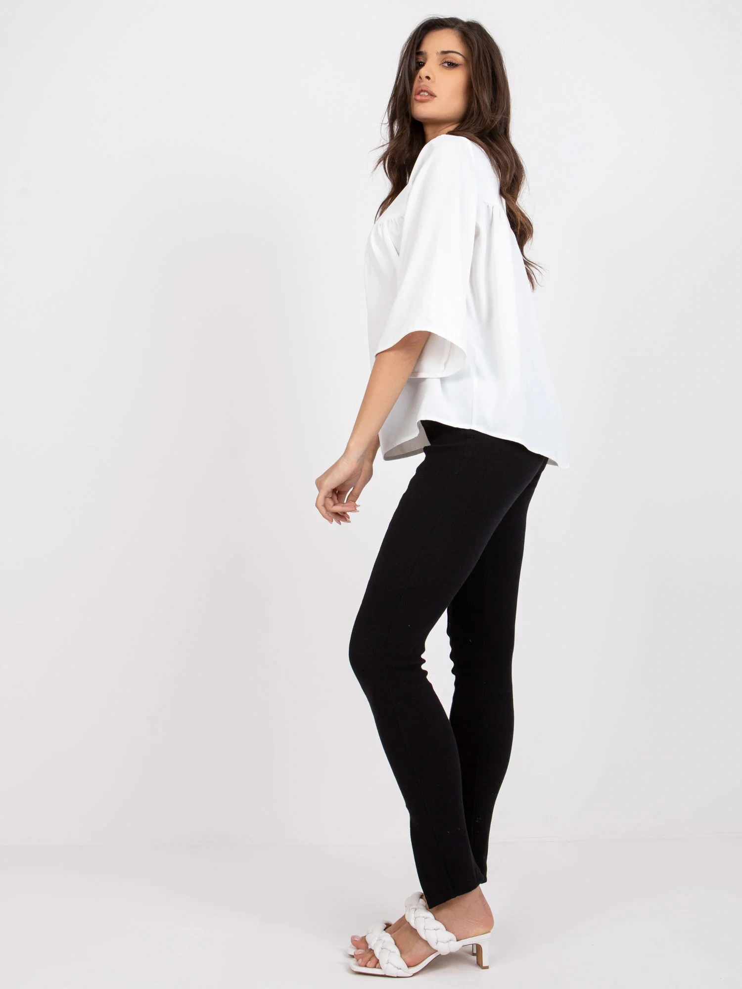 Rozměry halenky ve velikosti S/M měřené na plocho: šířka v podpaží - 58 cm, celková délka: přední díl - 64 cm, zadní díl - 69 cm, délka rukávu - 45 cm.