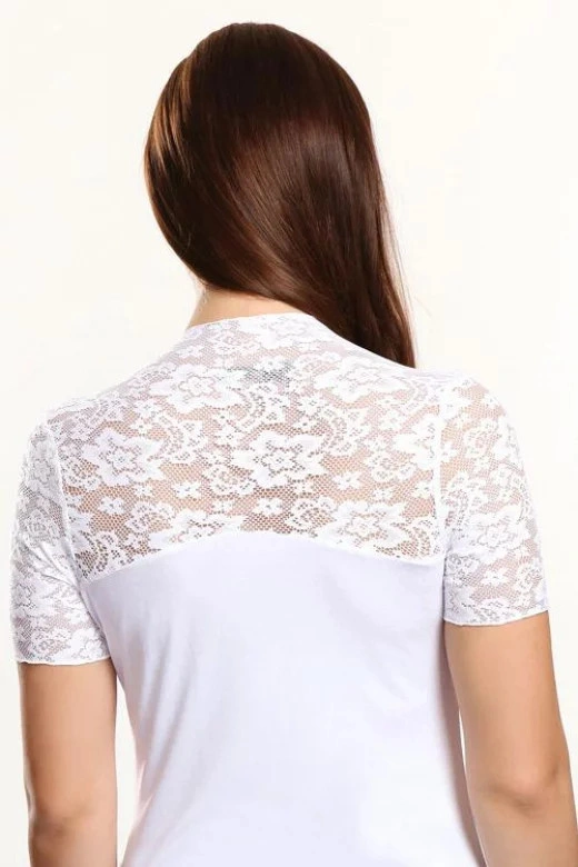 Dámská halenka s tylovými dlouhými rukávy. Rafinovaný střih na spodní části halenky. Kolem krku kula