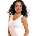 Dámská slušivá halenka Violana Gina bez rukávů. Halenku můžete nosít pod sáčkem a nebo jen tak v letním období. Perfektně se přizpůsobí Vašemu tělu. Jako jemný detail bylo použito nařasení v oblasti prsou. V nabídce jí naleznete v barvě krémová.