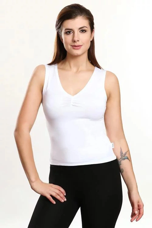 Dámská slušivá halenka Violana Gina bez rukávů. Halenku můžete nosít pod sáčkem a nebo jen tak v letním období. Perfektně se přizpůsobí Vašemu tělu. Jako jemný detail bylo použito nařasení v oblasti prsou. V nabídce jí naleznete v barvě krémová.