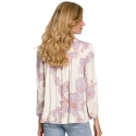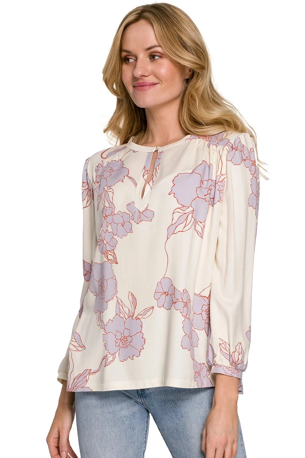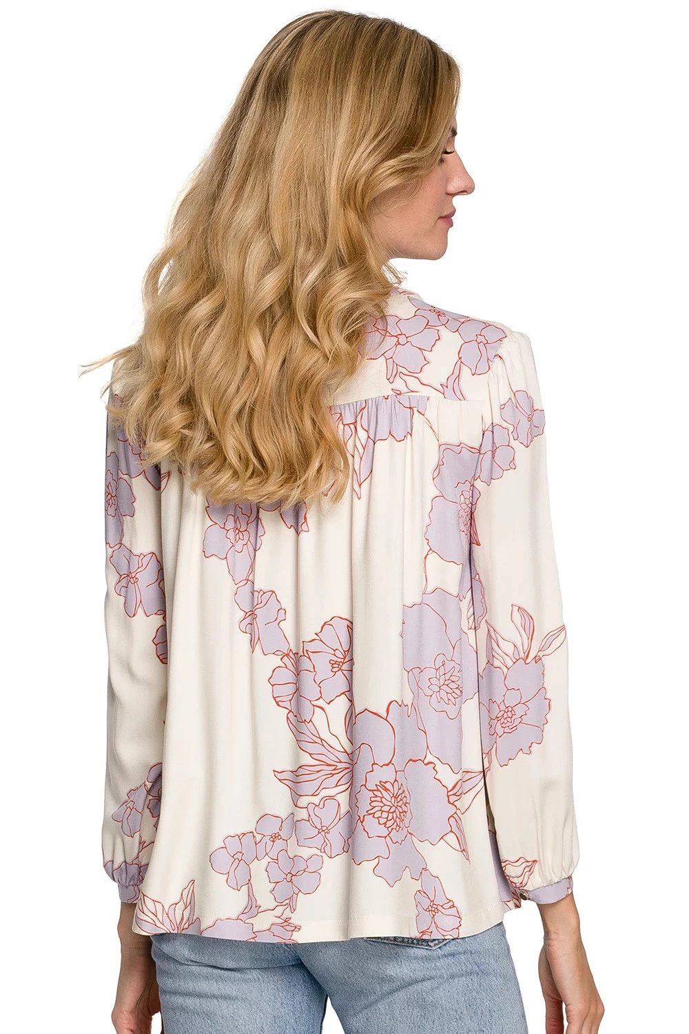 Tato halenka je vyrobena z jemné viskózové tkaniny s originálním květinovým vzorem a je ideální volbou, pokud chcete svůj šatník obohatit o barvy. Díky střihu ji můžete nosit na mnoho způsobů. Vypadá skvěle jak zastrčený, tak volný. Kombinujte je s džínami nebo elegantními kousky.