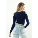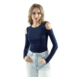 Tričko s dlouhými rukávy z žebrovaného úpletu. Zajímavé výřezy na ramenou. Vyrobeno z velmi pružné tkaniny, která se dokonale přizpůsobí postavě. K dispozici ve čtyřech barvách. Navrženo a vyrobeno v Polsku.