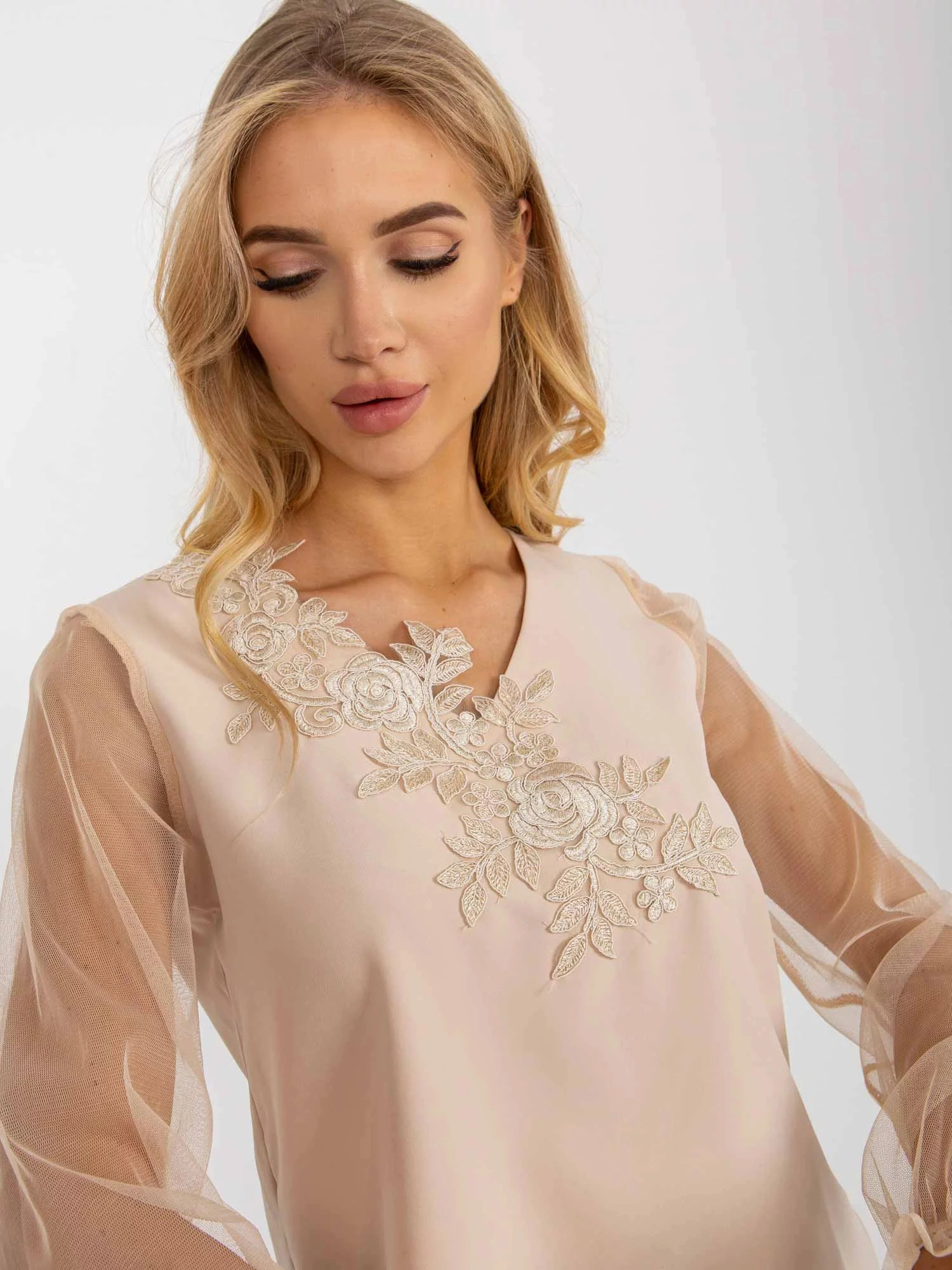 Rozměry halenky ve velikosti 36 měřené na plocho: šířka v podpaží - 47 cm, délka rukávu - 60 cm, celková délka - 56 cm.