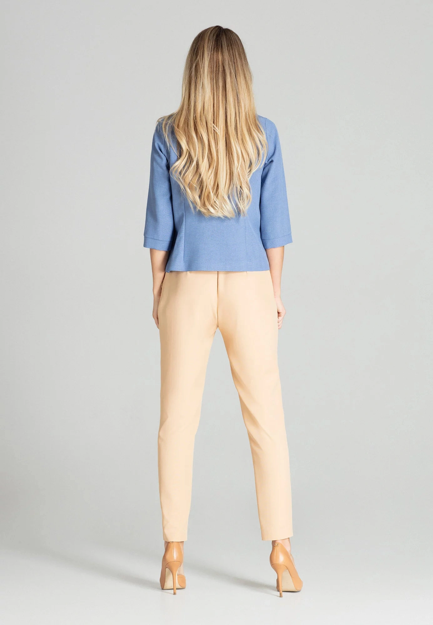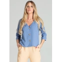 -modrá krátká jednoduchá halenka s 3/4 rukávy a manžetou