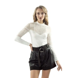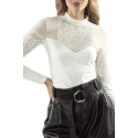 Dámská halenka Melinda cream ELDAR - krémová barva - z vysoce kvalitní viskózy - dlouhé rukávy - výstřih a rukávy zdobené krajkou