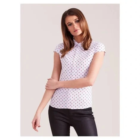 Bílá dámská halenka s červenými puntíky .