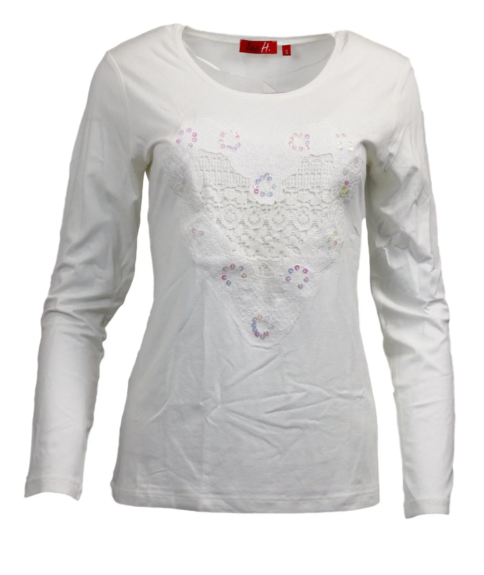 Elegantní bílé triko Linaka s výstřihem do V dozdobený kamínky Svarovski elements. Přední díl má dvo