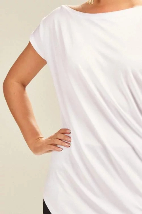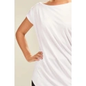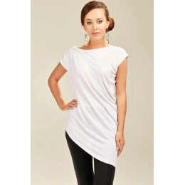 Módní dámská halenka (tunika) SHORELINE 008 typu OVERSIZE (volný střih) s krátkými rukávy v krémové barvě. Větší, šikmo ušitý kulatý výstřih kolem krku. Spodní část je šikmo střižena. Ideální na teplé večery. Vyrobeno z velmi kvalitního materiálu. Materiálové složení: 96% viskóza, 4% elastan. Velikosti: S až 3XL. Baleno v průhledném slídovém obalu. Limitovaná edice SHORELINE by Violana.