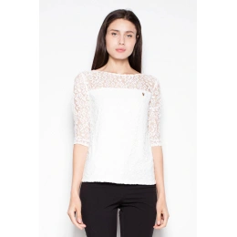 Elegantní halenka s 3/4 rukávy a průhledným horním dílem v charakteristických skvrnách. Skvěle se hodí k jakémukoli oblečení.