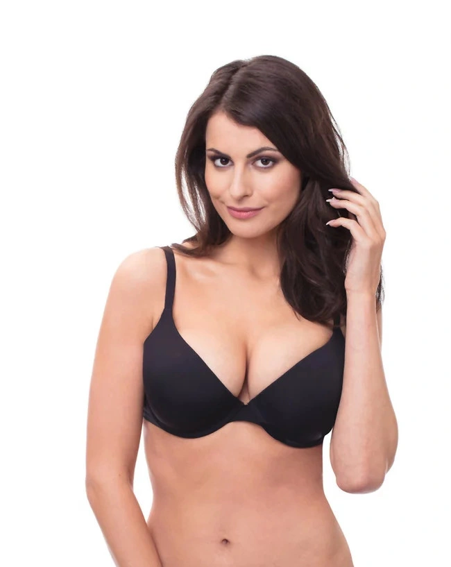Dámská podprsenka má hladké košíčky, stupňovitě vyztužené s mírným push-up efektem pro dokonalý dekolt.