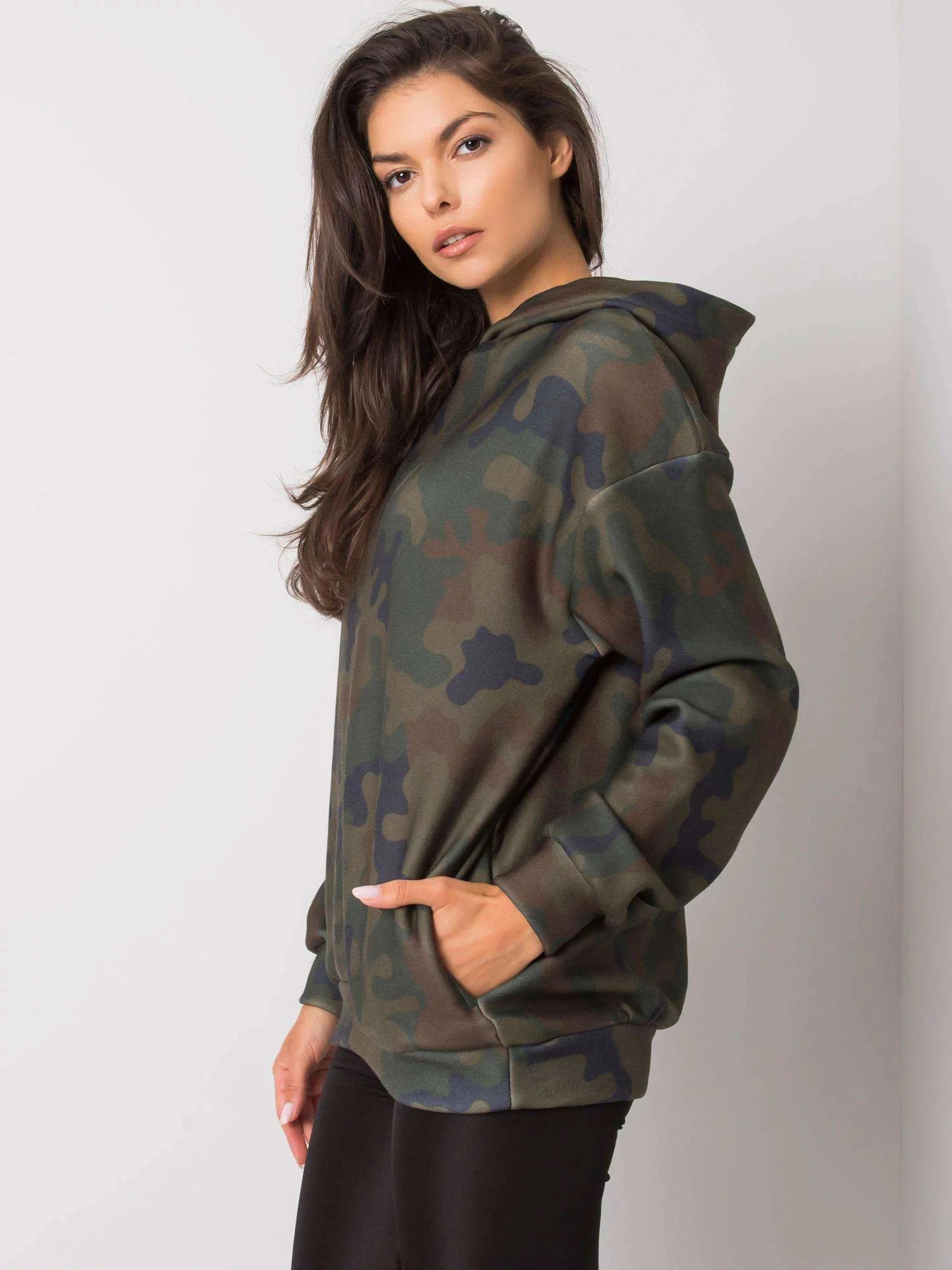 Khaki moro mikina s kapsami.