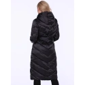 Vázaný dlouhý dámský péřový kabát je nadčasový kousek, který nikdy neomrzí a nevyjde z módy. Sytě černá barva s mírným leskem je rozhodně nutností pro každého milovníka klasického designu. Vázání vám umožní krásně zdůraznit ženskou postavu a péřová výplň zajistí teplo během zimní aury.