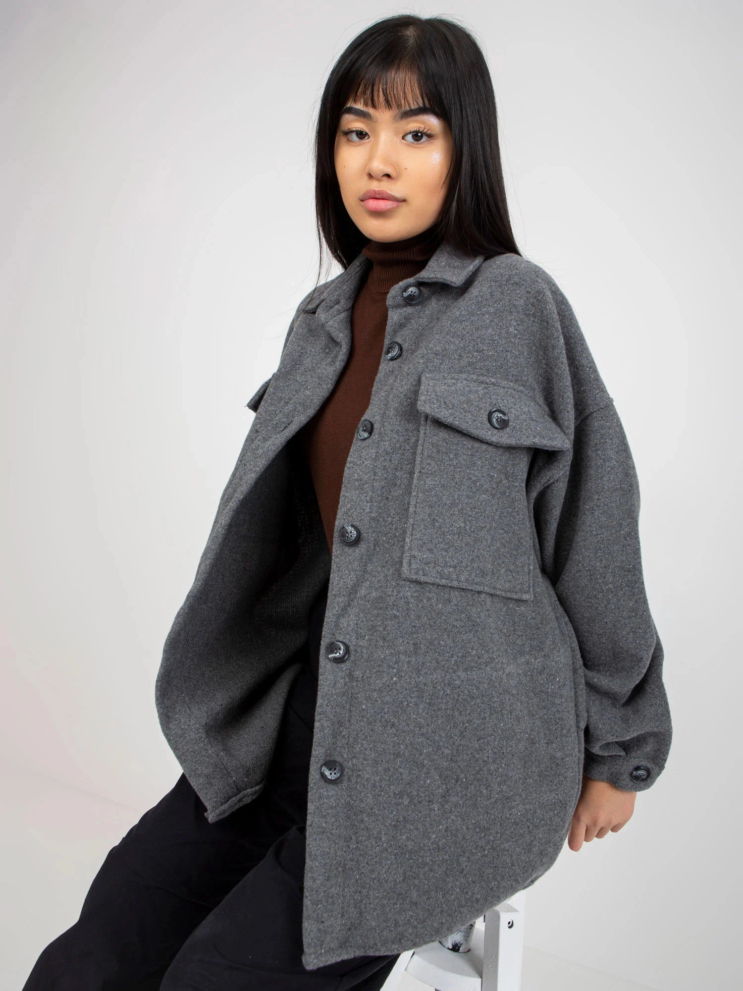 Tmavě šedé teplé dámské tričko s dlouhým rukávem .