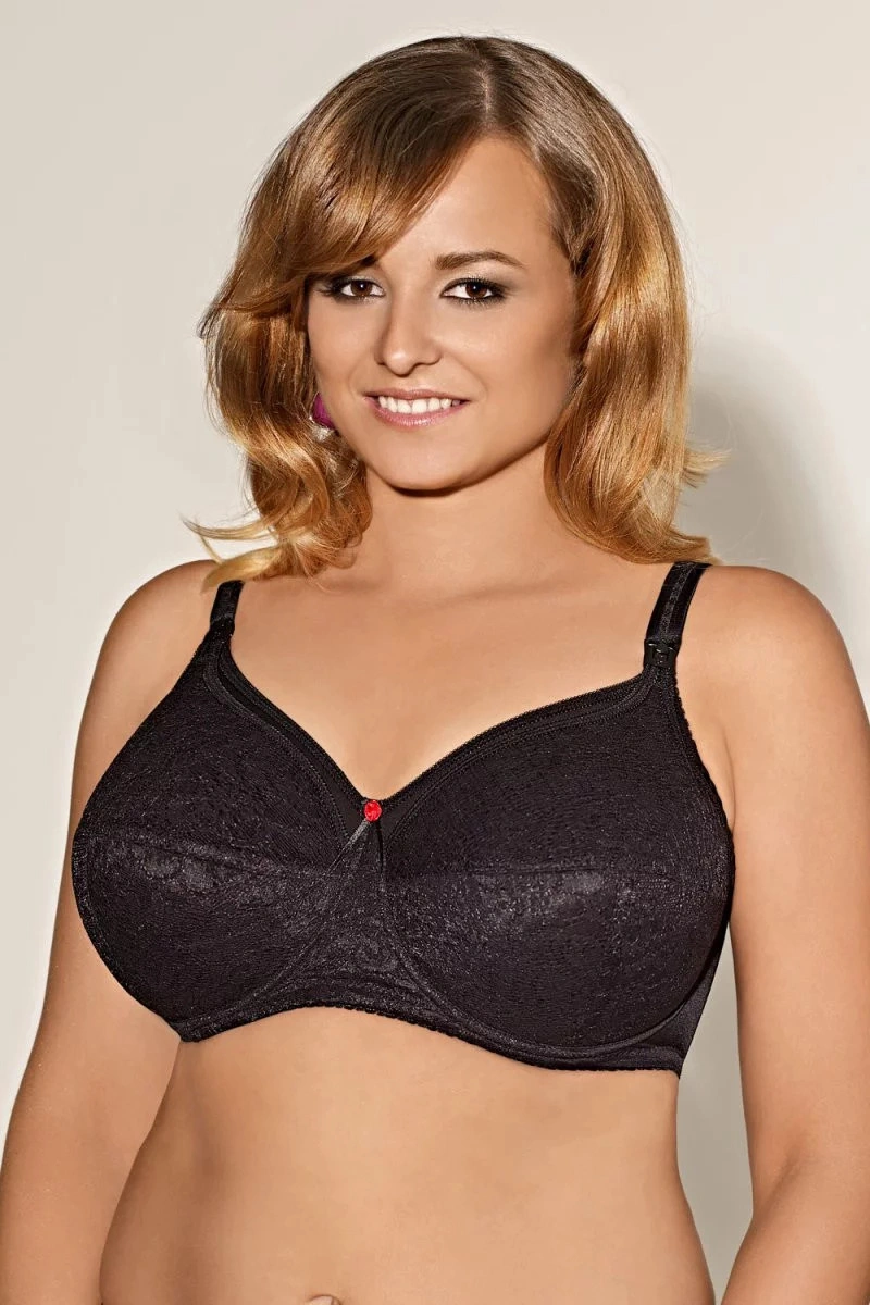 Atraktivní novinka pro nastávající nebo čerstvé maminky. Košíčky i obvod tvoří krásná krajka. Vnitřní část košíčků je vystlána bavlnou. Mezi košíčky je umístěná ozdobná mašlička. Měkké košíčky doplňují kostice, které dobře přiléhají, netlačí a poskytují pevnou oporu. Ramínka můžete libovolně regulovat. Košíček se zapíná patentem click clack, který usnadňuje kojení a můžete jej odepnout i jednou rukou. Obvod doplňuje svislá výztuha. Jemný design pro maximální spokojenost.