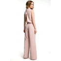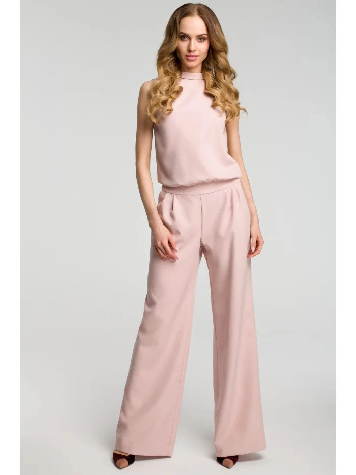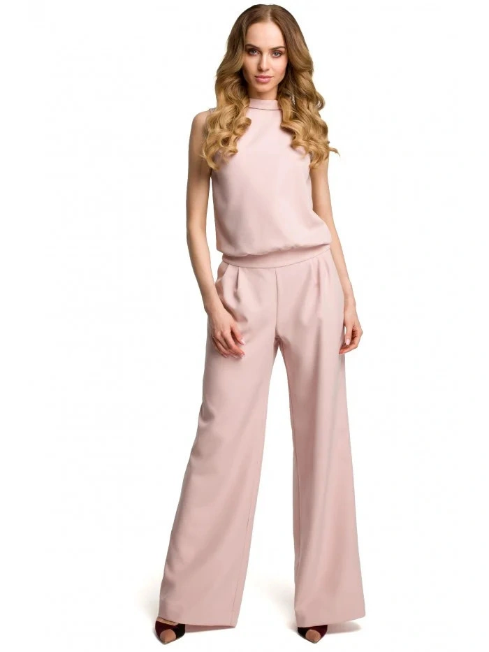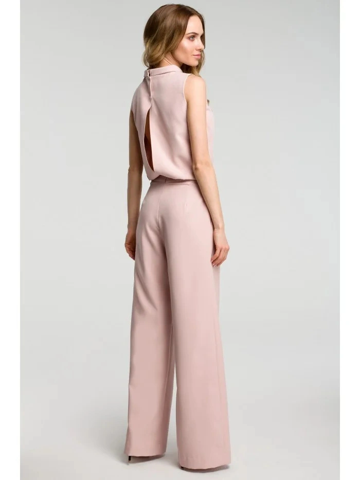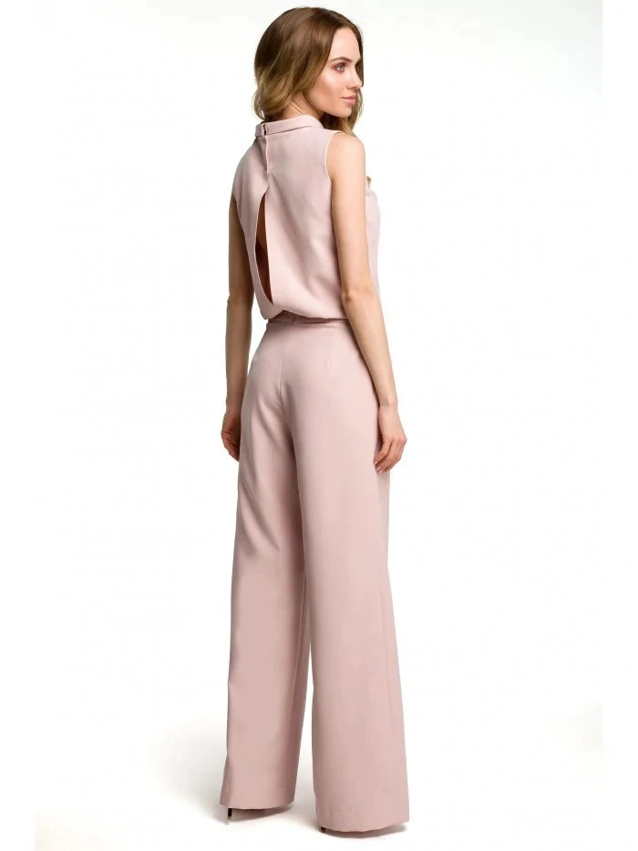 Vylepšete svůj večerní vzhled na okouzlující úroveň v tomto overalu bez rukávů s rozšířenými nohavicemi, ohrnutým výstřihem a odvážnými rozštěpenými zády.