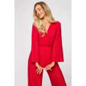 Tento krásný overal má řadu výhod. Je elegantní díky širokému střihu nohavic a rukávů, zavinovacímu vršku a jemnému řasení , je praktický a také pohodlný.