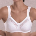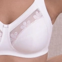 Pohodlná, měkká podprsenka bez kostic značky Anita. Vyrobená z "prodyšného", pro tělo příjemného mikrovlákna, zdobeného květinovou výšivkou na tylu. Třídílná konstrukce košíčků s bočními lištami dokonale tvaruje poprsí. Široké, měkce podšité ramenní popruhy zmírňují tlak na ramena a krk. Zajišťuje nejvyšší komfort nošení v kombinaci s dokonalou podporou i velkých prsou.