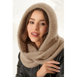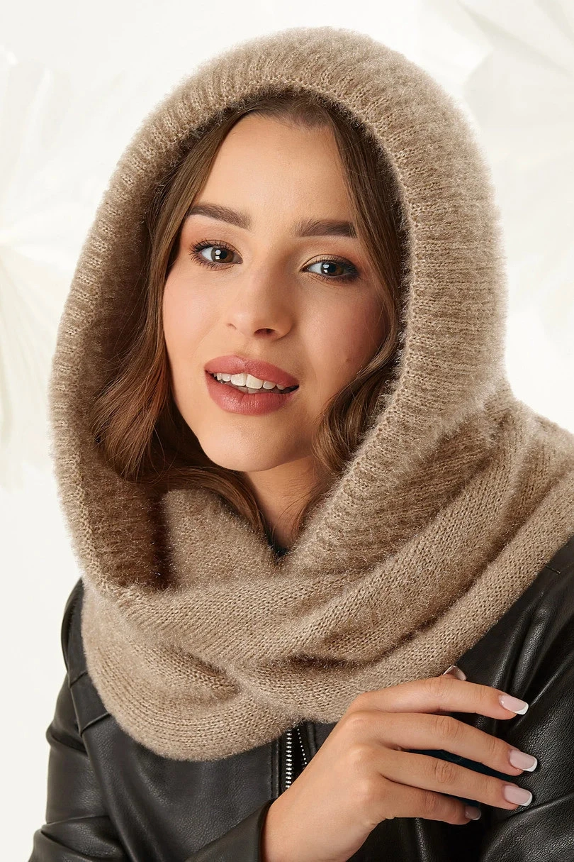 Dámská komínová šála s kapucí 48-495 béžová - AJS