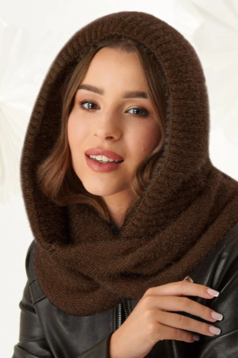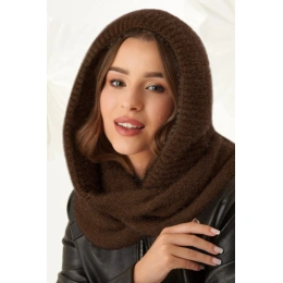 Dámská komínová šála s kapucí 48-495 čokoládová - AJS