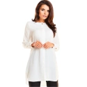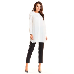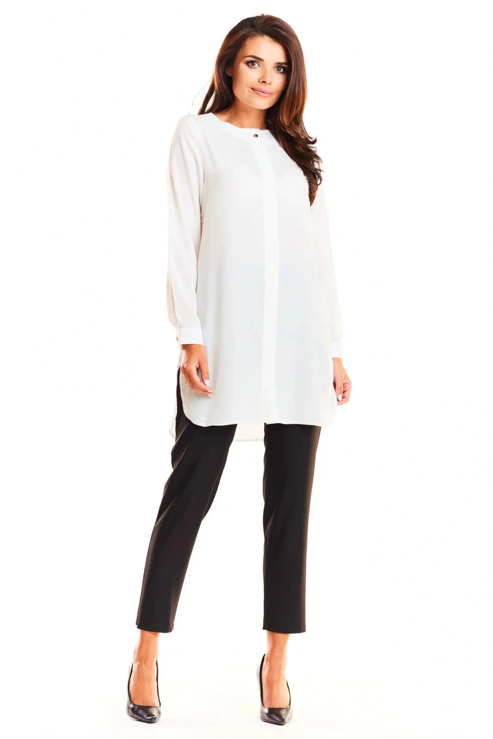 Šaty s jednoduchým lichoběžníkovým střihem. Smyslné praskliny na rukávech dodávají šatům charakter.