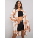 Dámská kostkovaná košile v barvě kamélie a ecru.