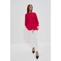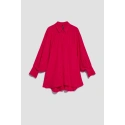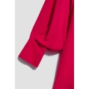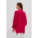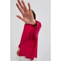 80% POLYESTER, 17% BAVLNA, 3% ELASTAN Elegantní košile s dlouhými, širokými, nabíranými rukávy. Rukávy jsou zakončeny volány a širokými manžetami se zapínáním na dva malé knoflíky. Vyrobeno v tmavě růžové barvě. Klasický stahovací límec s knoflíkem. Ve spodní části mírně rozšířená splývavá látka tvoří krásný tvar A. Spodní díl tuniky mírně zaoblený. Hladký materiál, bez vzoru. Oversize střih a delší střih skvěle sluší každé postavě. Lehké a pohodlné na nošení.