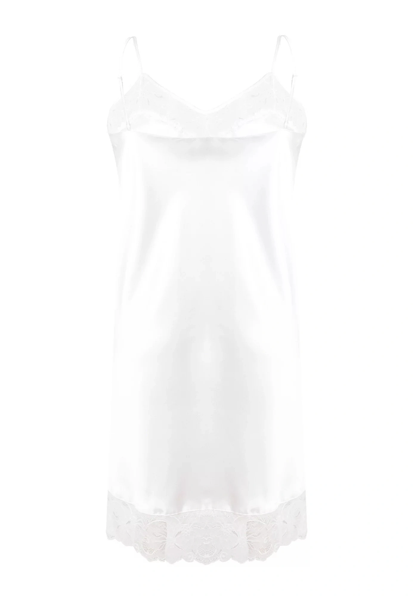 Krajkový výstřih a spodní okraj košilky dodávají celému modelu na eleganci a stylu. Spojení košíčků je ozdobené lesklým zirkonem. Košilka má tenká ramínka, jejichž délku je možné nastavit. Lehce rozšířený střih směrem dolů je zárukou pohodlí a komfortu při nošení.