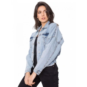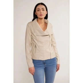 Dámská bunda se stojáčkem, vyrobená z ekologické kůže. Bunda s dlouhými rukávy se zapínáním na koncích. Bunda na zip. V pase jsou dvě kapsy na zip. Tento model je ideální jako doplněk ke každodenním stylizacím. Modelka na obrázku je 177 cm vysoká a má velikost 36.
