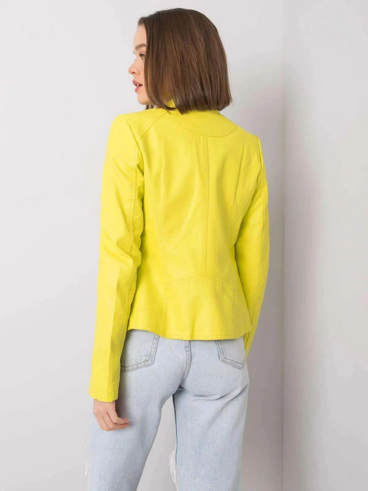 Dámská koženková bunda, krátká, dlouhé rukávy. Prošívaná. Na zip.