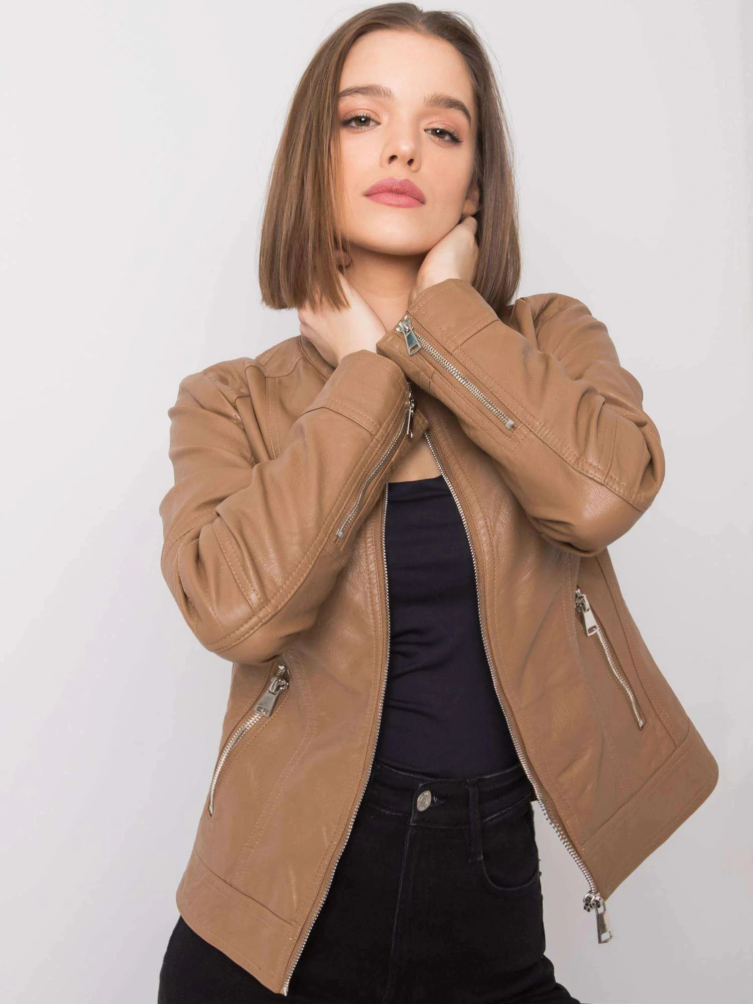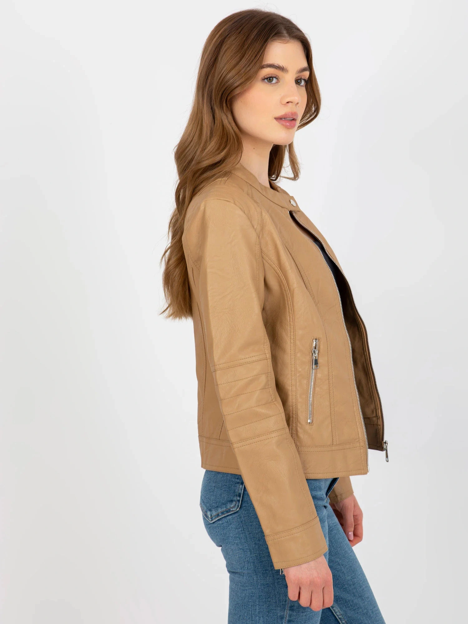 Světlá sametová bunda z ekokůže s kapsami od Eulalie .