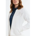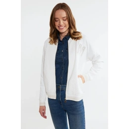 Dámská bunda s aplikací v podobě tryskového loga značky Monnari. Bunda s dlouhými rukávy, zapínání na zip. Zapuštěné kapsy na bocích. Tento model se ideálně hodí jako doplněk ke každodenní stylizaci. Modelka na obrázku je vysoká 177 cm a má velikost 36.