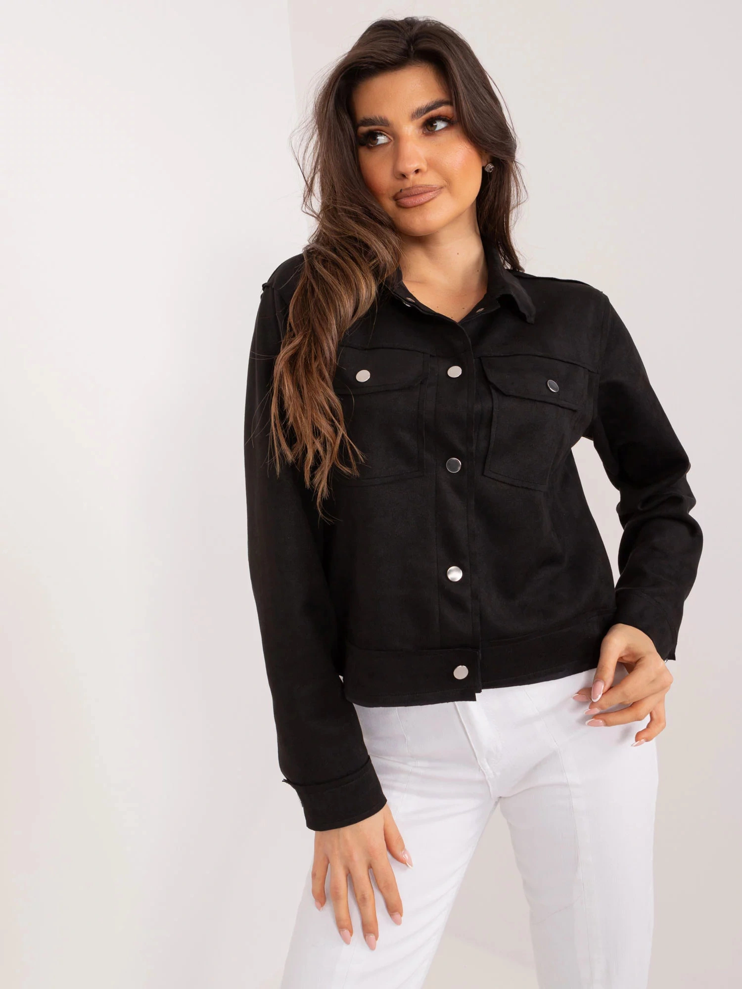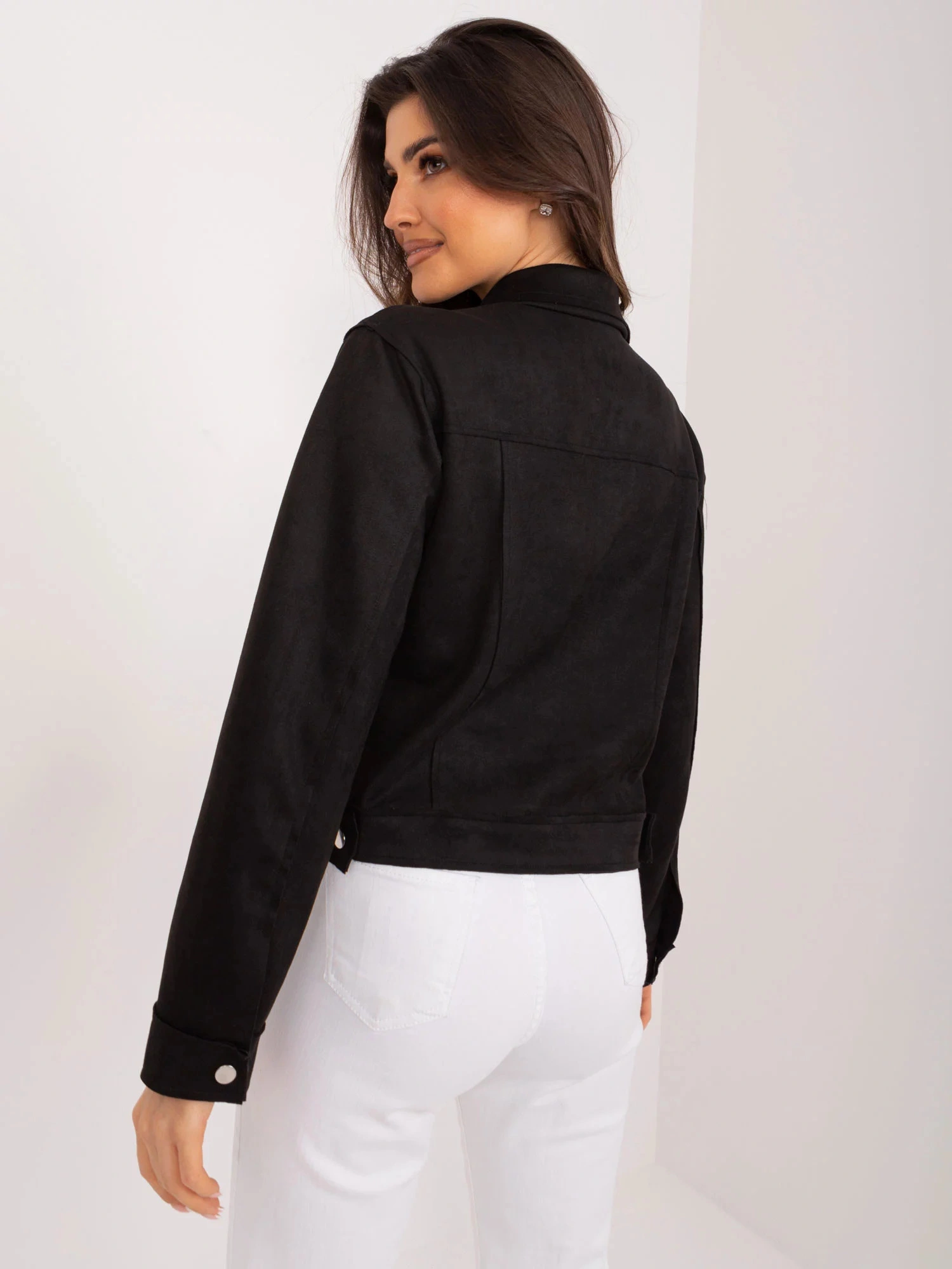 Dámská krátká bundička z broušené kůže BA KR 2702.13 Černá - FPrice