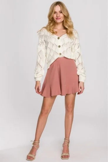 Mini sukně se zajímavým překrytím na přední straně. Jemný volánek na lemu dodává originalitu. Sukně se zapíná na krytý zip. Ideální jako základ pro váš styling, hodí se jak k elegantním verzím se sakem, tak k ležérnějším se svetrem a teniskami.