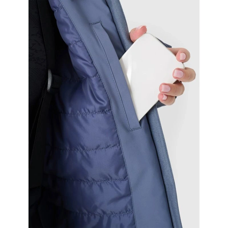 Dámská lyžařská bunda 4F je vybavena membránou NeoDry 5000/3000, která zajišťuje nepromokavost bundy při mírném dešti nebo sněžení a zároveň optimální odvod vlhkosti pro použití ve městě.Bunda pro každodenní nošení má běžný střih a pokrývá všechny základní požadavky na ochranu proti vlhkosti.Zpracované materiály jsou ošetřeny IRR a navíc jsou vodoodpudivé a prodyšné.Větruodolné, vodoodpudivé a prodyšné díky podlepeným švům.Syntetické prachové peří jeve srovnání spřírodním peřím odolnější a snadněji se udržuje. I když je mokré, udržuje mnohem déle teplo a ve srovnání s přírodním peřím poměrně rychle schne.Navíc nevyžaduje složité praní a sušení.