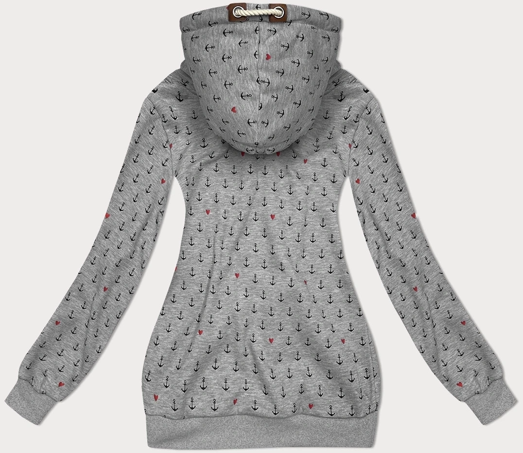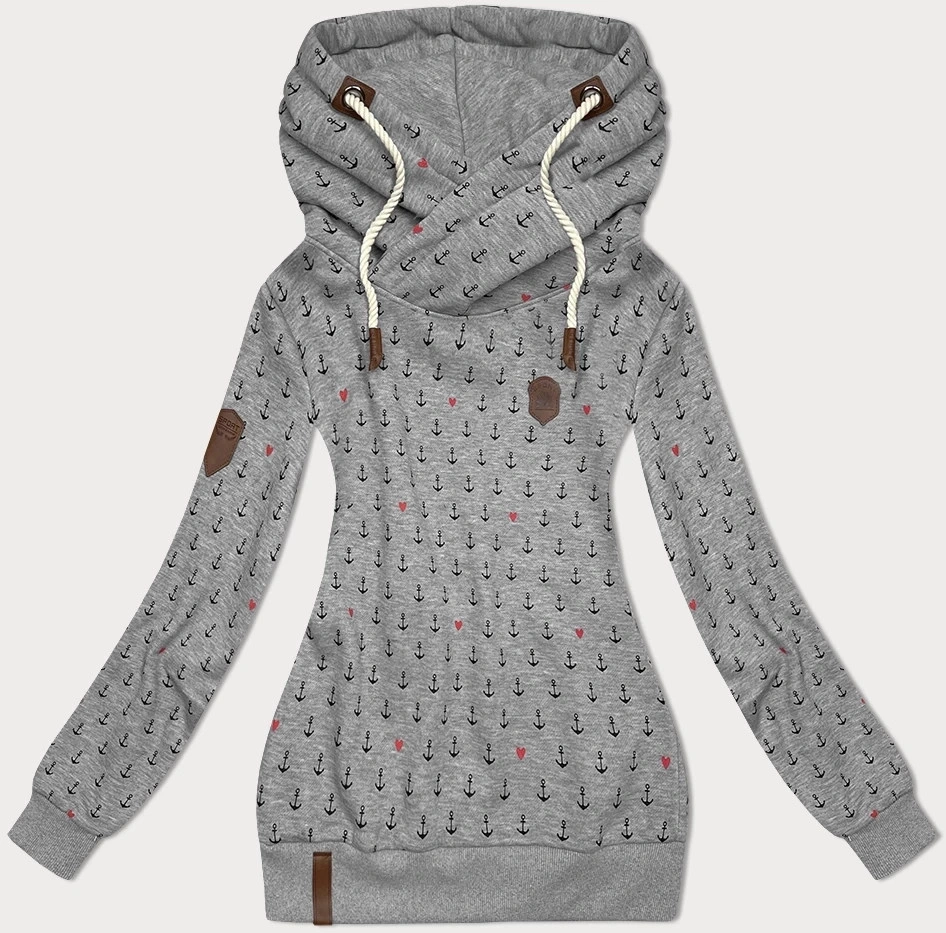 Mikina se obléká přes hlavu. Model má kapuci se stahujícími šňůrkami. Kapuci není možné odepnout. Uvnitř modelu je příjemný mechovitý kožíšek. Rukávy a spodní okraj mikiny jsou olemované stahovacími lemy. Mikina má délku k bokům.
