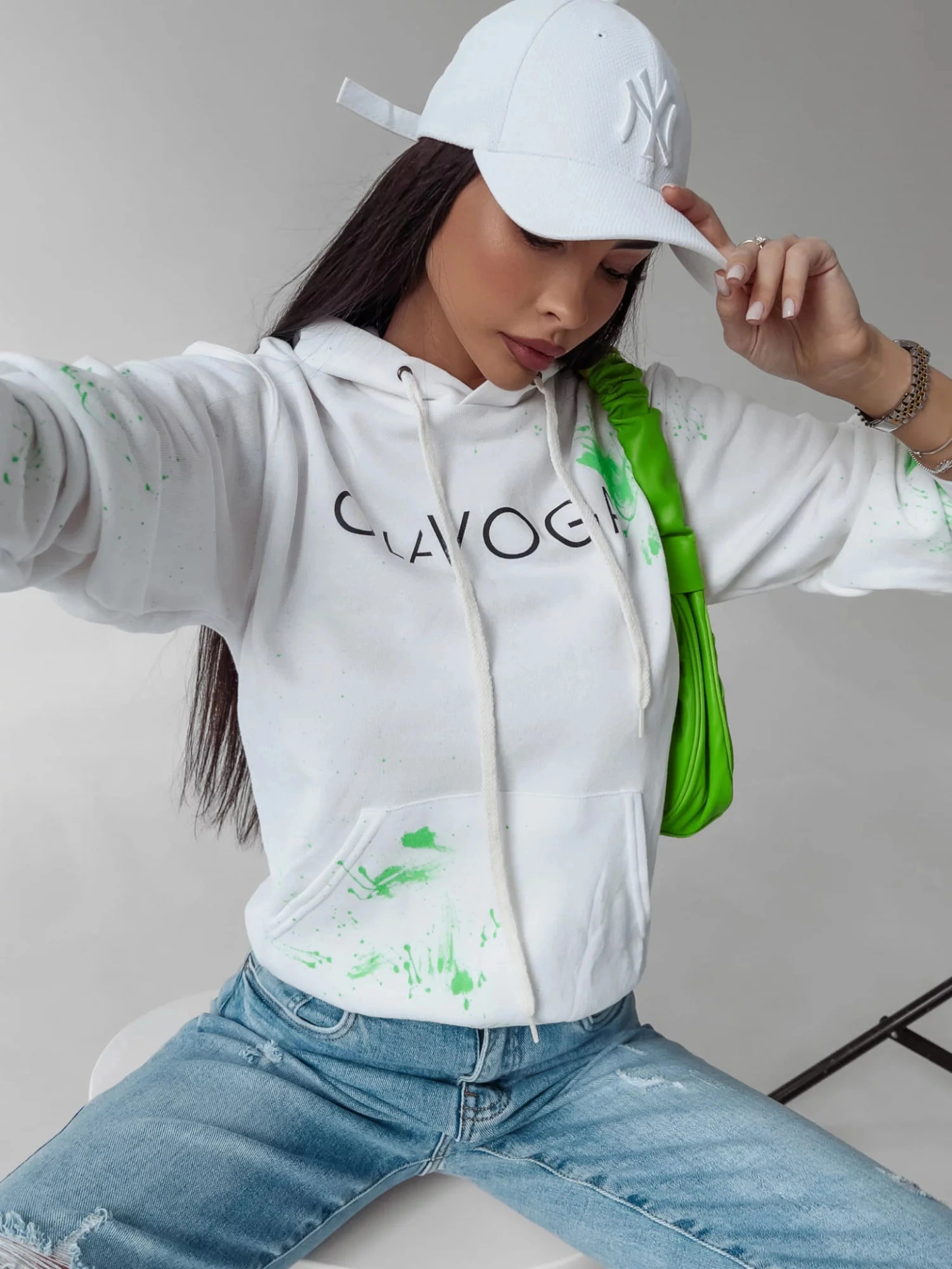 - bavlněná strečová mikina v bílé barvě s imitací neonových skvrn