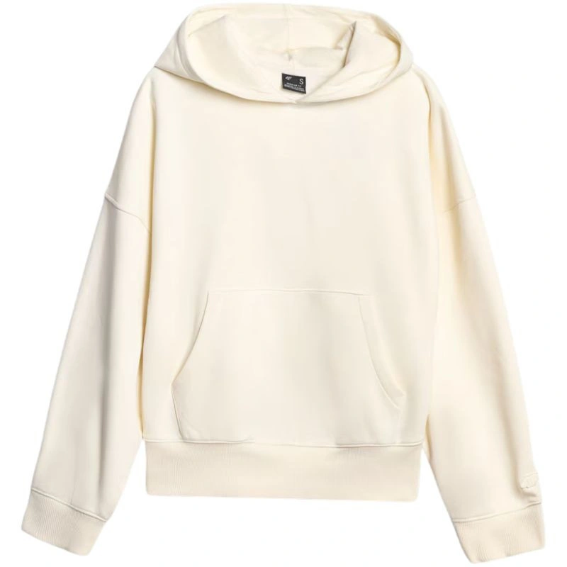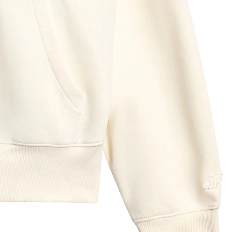 Bluza damska 4F F1887 kremowa 4FWAW25TSWSF1887 12S Bluza damska sprawdzi się na co dzień. Dane techniczne:· Materiał główny: 80% bawełna, 20% poliester· Materiał dodatkowy: 100% bawełna· Materiał dodatkowy 2: 95% bawełna, 5% elastan· Gramatura: 350 gsm - gruby, trwały materiał zapewniający komfort termiczny· Jednostronnie czesane wnętrze - zapewnia dodatkowe ciepło i miękkość od wewnątrz· Standardowy krój - wygodnie dopasowuje się do sylwetki· Standardowy fason sięgający do bioder - klasyczna długość zapewniająca uniwersalne dopasowanie· Wykonana w przeważającej części z bawełny - miękka, trwała i przyjemna w dotyku· Dodatek poliestru - zwiększa wytrzymałość materiału i odporność na zużycie· Jednolita kolorystyka - uniwersalna baza do różnych stylizacji· Dzianina single jersey - gładka, miękka w dotyku powierzchnia· Dekolt ze zintegrowanym kapturem - dodatkowa ochrona i swobodny wygląd· Mankiety ze ściągaczem - stabilne wykończenie rękawów· Nie