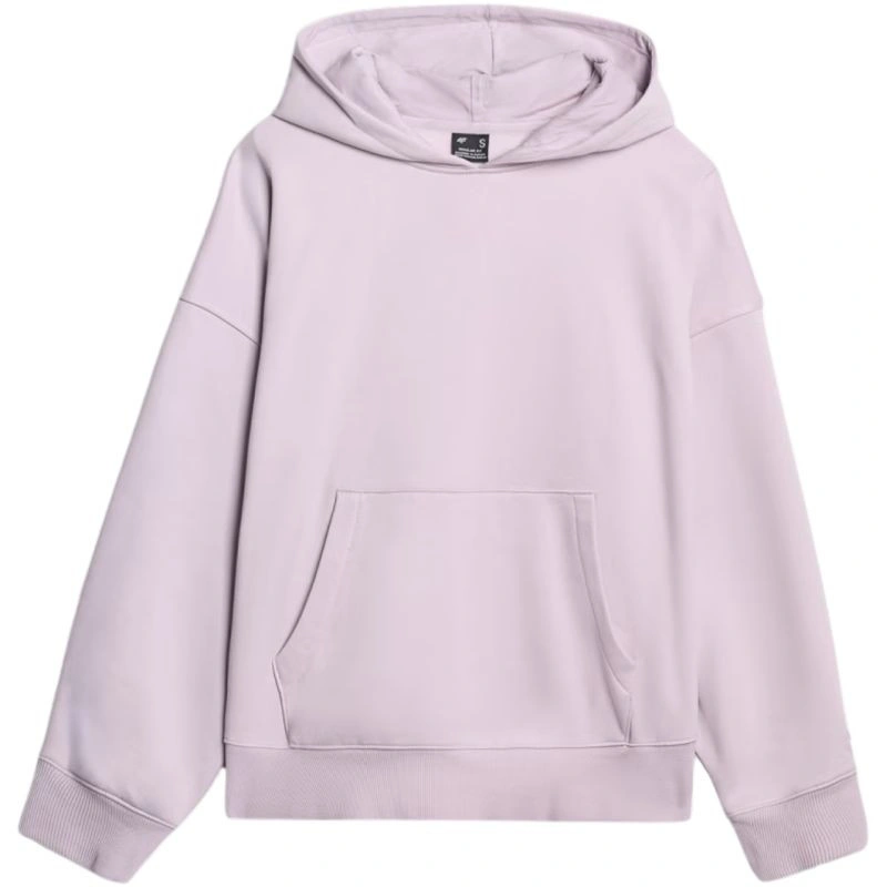 Bluza damska 4F F1887 jasny fiolet 4FWAW25TSWSF1887 52S Bluza damska sprawdzi się na co dzień. Dane techniczne:· Materiał główny: 80% bawełna, 20% poliester· Materiał dodatkowy: 100% bawełna· Materiał dodatkowy 2: 95% bawełna, 5% elastan· Gramatura: 350 gsm - gruby, trwały materiał zapewniający komfort termiczny· Jednostronnie czesane wnętrze - zapewnia dodatkowe ciepło i miękkość od wewnątrz· Standardowy krój - wygodnie dopasowuje się do sylwetki· Standardowy fason sięgający do bioder - klasyczna długość zapewniająca uniwersalne dopasowanie· Wykonana w przeważającej części z bawełny - miękka, trwała i przyjemna w dotyku· Dodatek poliestru - zwiększa wytrzymałość materiału i odporność na zużycie· Jednolita kolorystyka - uniwersalna baza do różnych stylizacji· Dzianina single jersey - gładka, miękka w dotyku powierzchnia· Dekolt ze zintegrowanym kapturem - dodatkowa ochrona i swobodny wygląd· Mankiety ze ściągaczem - stabilne wykończenie rękawów