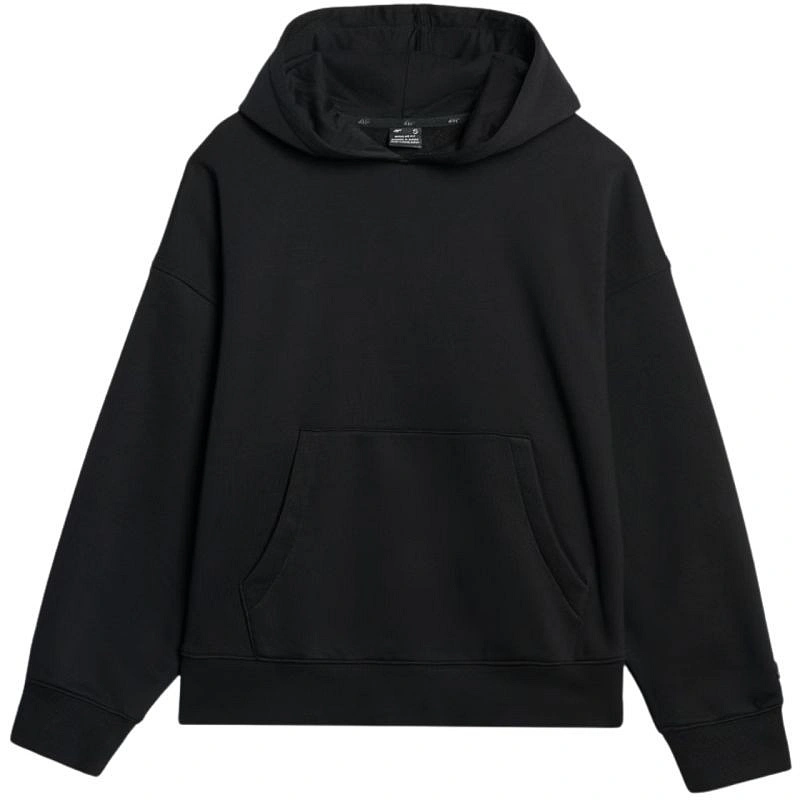 Bluza damska 4F F1887 głęboka czerń 4FWAW25TSWSF1887 20S Bluza damska sprawdzi się na co dzień. Dane techniczne:· Materiał główny: 80% bawełna, 20% poliester· Materiał dodatkowy: 100% bawełna· Materiał dodatkowy 2: 95% bawełna, 5% elastan· Gramatura: 350 gsm - gruby, trwały materiał zapewniający komfort termiczny· Jednostronnie czesane wnętrze - zapewnia dodatkowe ciepło i miękkość od wewnątrz· Standardowy krój - wygodnie dopasowuje się do sylwetki· Standardowy fason sięgający do bioder - klasyczna długość zapewniająca uniwersalne dopasowanie· Wykonana w przeważającej części z bawełny - miękka, trwała i przyjemna w dotyku· Dodatek poliestru - zwiększa wytrzymałość materiału i odporność na zużycie· Jednolita kolorystyka - uniwersalna baza do różnych stylizacji· Dzianina single jersey - gładka, miękka w dotyku powierzchnia· Dekolt ze zintegrowanym kapturem - dodatkowa ochrona i swobodny wygląd· Mankiety ze ściągaczem - stabilne wykończenie rękaw