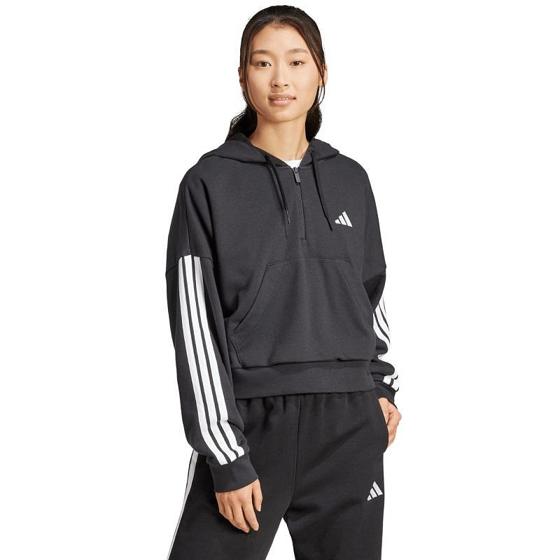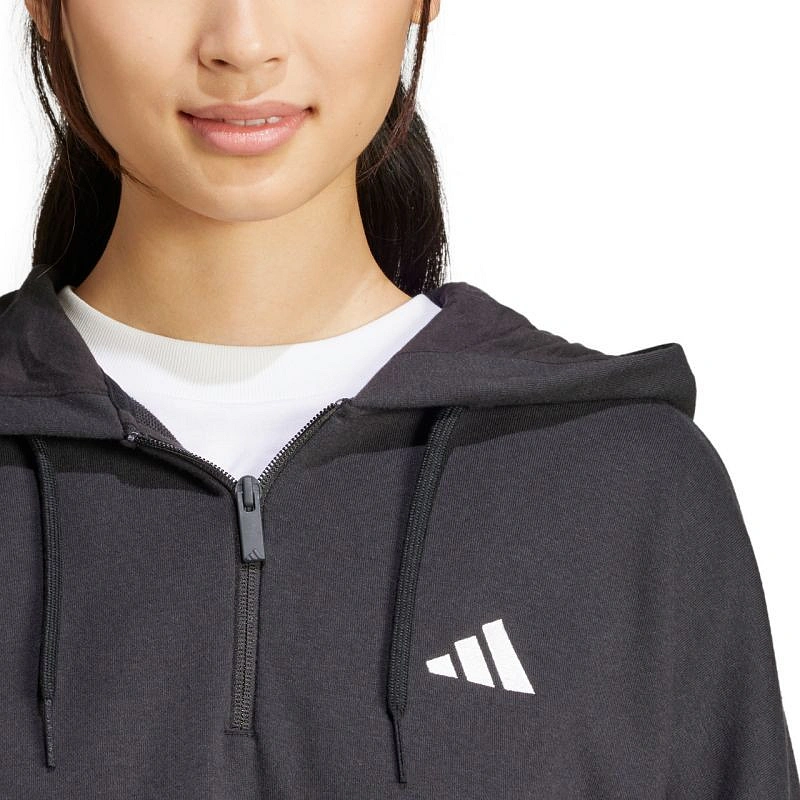 Dámská mikina adidas Essentials 3-Stripes French Terry Quarter-Zip Hoodie Black JN1956 Tato dámská mikina adidas je ideální pro každodenní nošení. Dominantní bavlněná tkanina. Rukávy lemované pružnými žebrovanými manžetami. Kratší střih. Integrovaná kapuce se stahovací šňůrkou pro nastavení. Kapsa na přední straně. Krátký zip. Malé vyšité logo na přední straně. Pruhy na ramenou. Materiál: 55 % bavlna, 36 % recyklovaný polyester, 9 % viskóza.