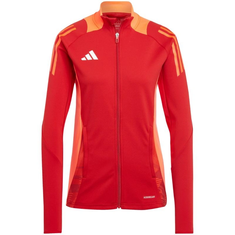 Dámská fotbalová mikina adidas Tiro 24 Competition Training červená IR5497 Tato dámská fotbalová mikina adidas je ideální na trénink. Stojáček. Dlouhý zip s ochrannou nášivkou na bradě. Přizpůsobený střih. Technologie Aeroready pomáhá vysušovat pokožku a zvyšuje pohodlí. Pruhy na ramenou. Materiál: 100% recyklovaný polyester.