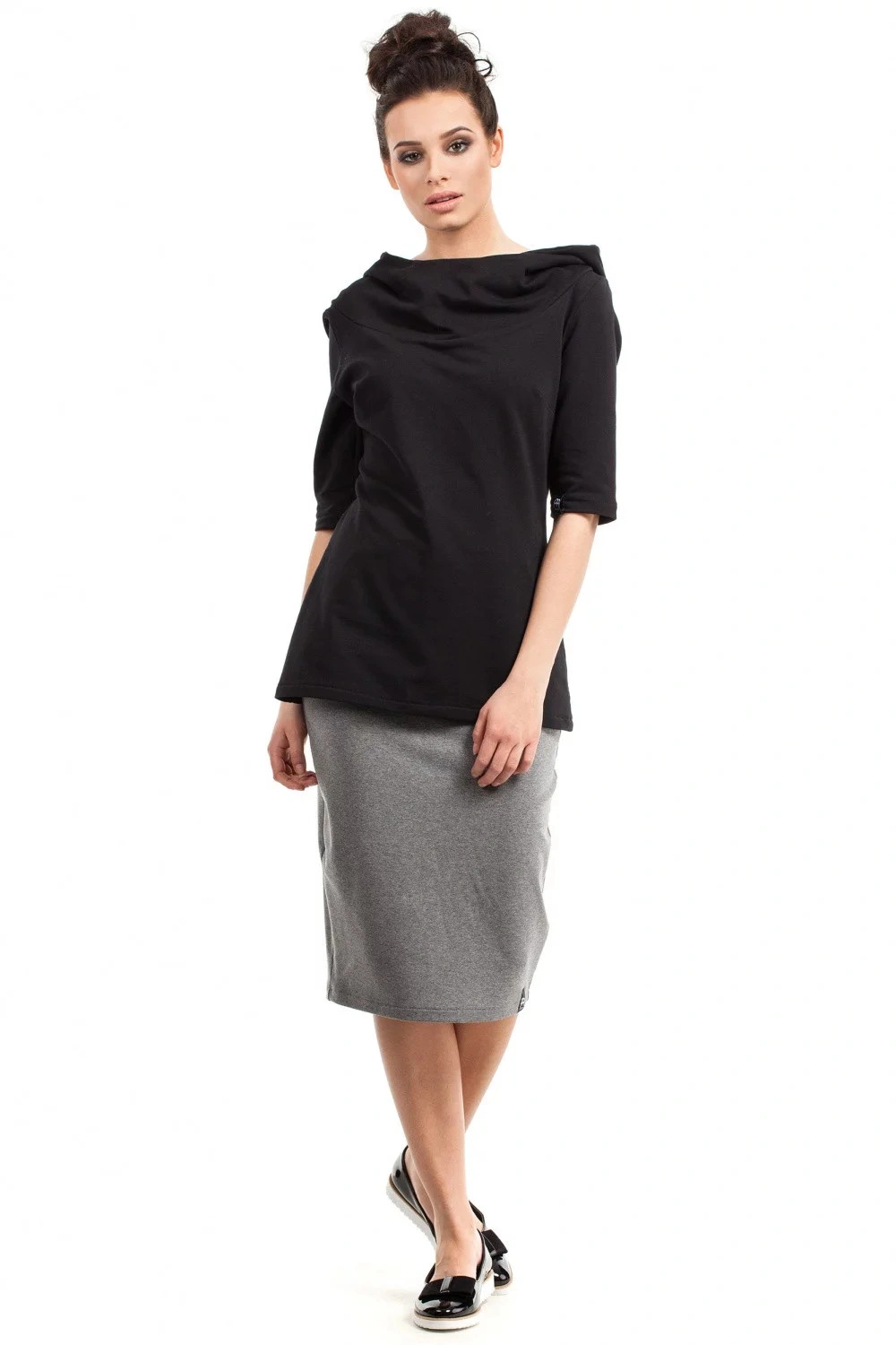 Jednoduchá těhotenská tunika s 3/4 rukávy a lodičkovým výstřihem ušitá s ohledem na budoucí maminky.