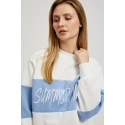 Jedinečná dámská mikina je perfektní volbou pro ženy, které oceňují pohodlí a styl. Vyrobeno z vysoce kvalitní bavlny, zaručuje pohodlí při nošení. Dlouhé rukávy dokonale chrání před chladem a kulatý výstřih dodává celku eleganci. Mikina v bílé a modré barvě s decentním bílým nápisem dodává originalitu a vyčnívá z davu. Manžeta na rukávech a ve spodní části mikiny navíc zajišťuje perfektní padnutí a odolnost. Mikina je perfektní volbou pro mnoho různých příležitostí. Můžete ji nosit na každodenní setkání s přáteli, na procházku, do práce nebo i na večer. Skvěle se hodí k džínům, sukním, legínám a mnoha dalším prvkům vašeho šatníku. Tato mikina díky svému jedinečnému designu jistě upoutá pozornost a umožní vám vyjádřit vaši individualitu. Už nečekejte, objednejte nyní a užijte si jedinečný styl!