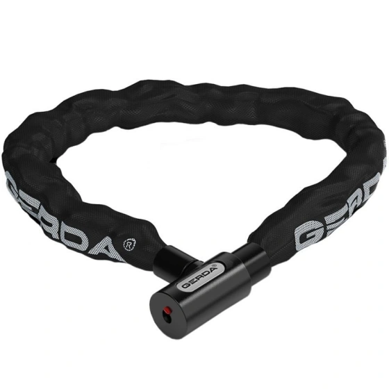 Řetězový zámek na kolo Gerda, kulaté tělo, kryt klíče černý Contra 900/6V Řetězový zámek na kolo Gerda umožňuje minimalizovat riziko krádeže kola. Tvrzené články s kulatým průřezem. Tvrzený řetěz ze zesílené oceli. Celek je krytý černým textilním potahem. Pohodlný symetrický klíč snadno ovladatelný i ve tmě. Klíč vyjímatelný pouze ze zavřeného zámku. Zátka klíčové dírky chrání před znečištěním. Technické údaje:- délka: 90 cm- články: ø 6 mm- textilní potah- sada obsahuje: zámek na kolo + 2 klíče.