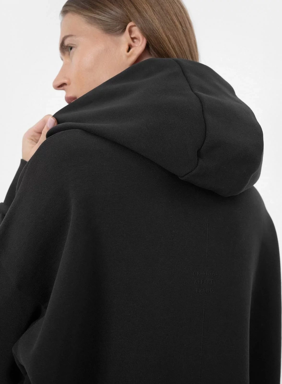 Dámská tepláková mikina bez zapínání a s kapucí. Ušili jsme ji z příjemné na dotek pleteniny s vysokým obsahem bavlny.