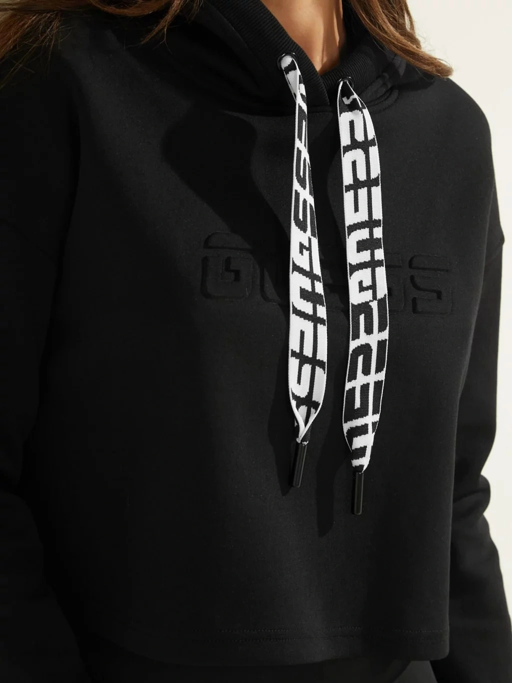Dámská cropped mikina Guess -Sportovního střihu -Kulatý výstřih s kapucí -Dlouhé rukávy - široké tka