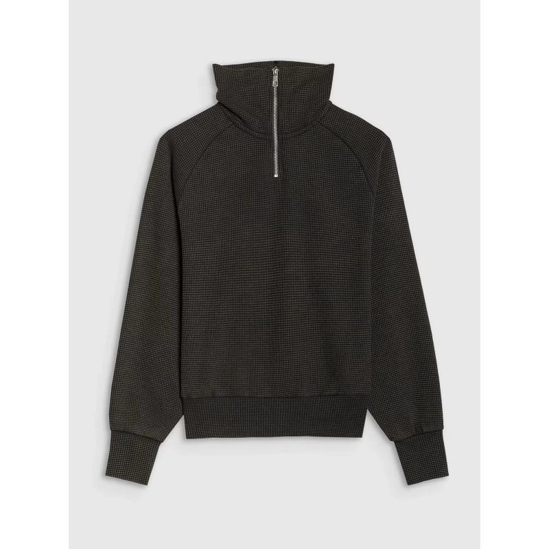 Materiál je tvořen ze 60 % bavlnou pro větší pohodlí, zatímco 40% přídavek polyesteru přispívá k odolnosti a zachování střihu i po mnoha vypráních. Mikina se zastrkuje přes hlavu a má límec na zip, elastické manžety a raglánové rukávy, které neomezují v pohybu.