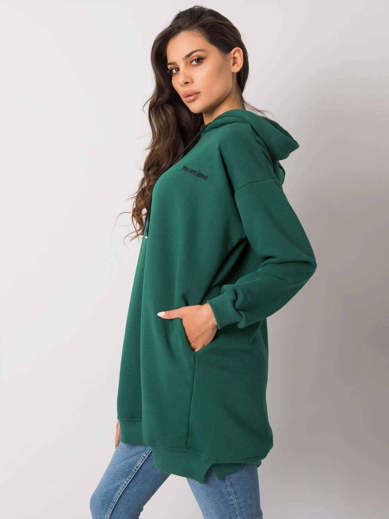 Rozměry mikiny v jedné velikosti měřené na plocho: šířka v podpaží - 63 cm, celková délka - 80 cm, délka rukávu - 59 cm