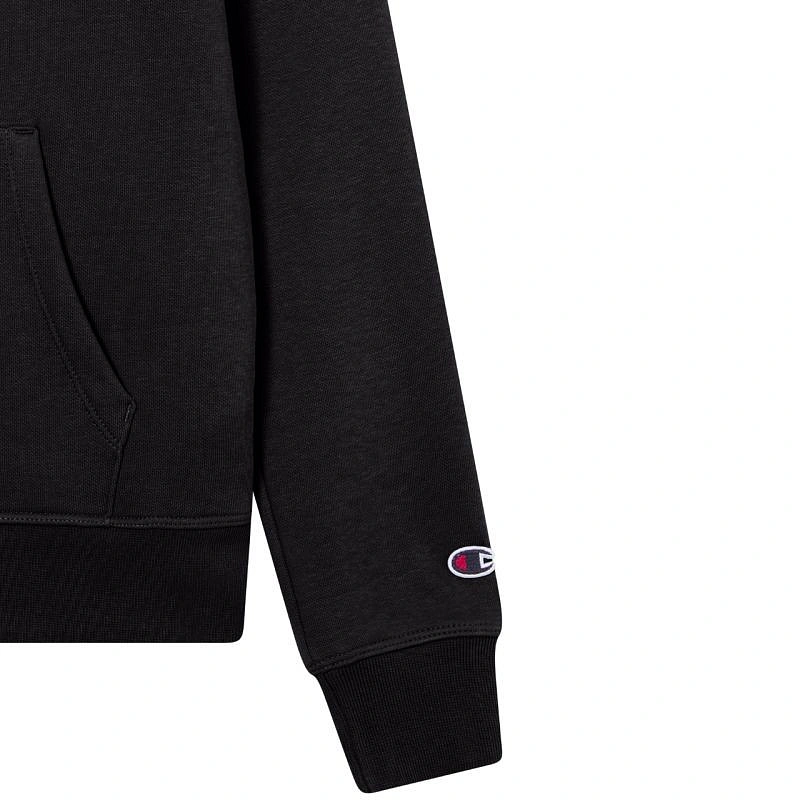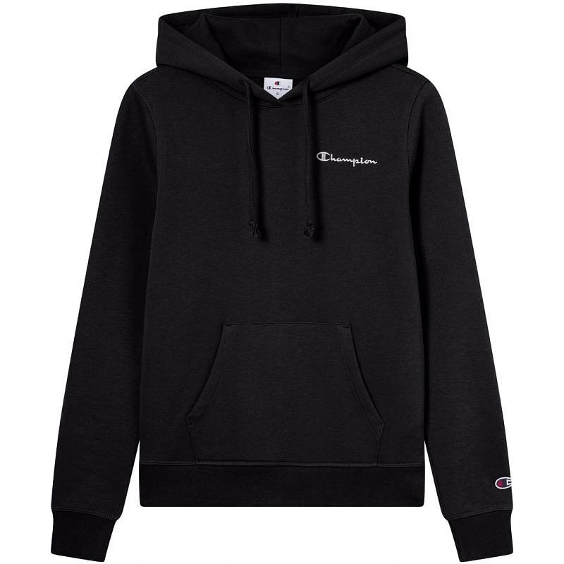 Dámská mikina Champion Black 118403 KK001 Dámská mikina Champion je ideální pro každodenní nošení, má úzký střih, žebrované manžety a spodní lem, klokaní kapsu, nastavitelnou kapuci se stahovací šňůrkou, decentní logo na hrudi, malé logo na rukávu, materiál: 70 % bavlna, 30 % polyester.