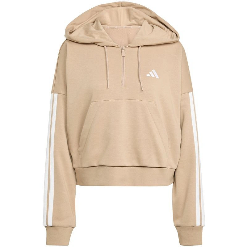 Dámská mikina Essentials 3-Stripes French Terry Hoodie Quarter Zip beige JX7676 Tato dámská mikina adidas je ideální pro každodenní nošení. Dominantní bavlněná tkanina. Rukávy lemované pružnými žebrovanými manžetami. Kratší střih. Integrovaná kapuce se stahovací šňůrkou pro nastavení. Kapsa na přední straně. Krátký zip. Malé vyšívané logo na přední straně. Pruhy na ramenou. Materiál: 55 % bavlna, 36 % recyklovaný polyester, 9 % viskóza.